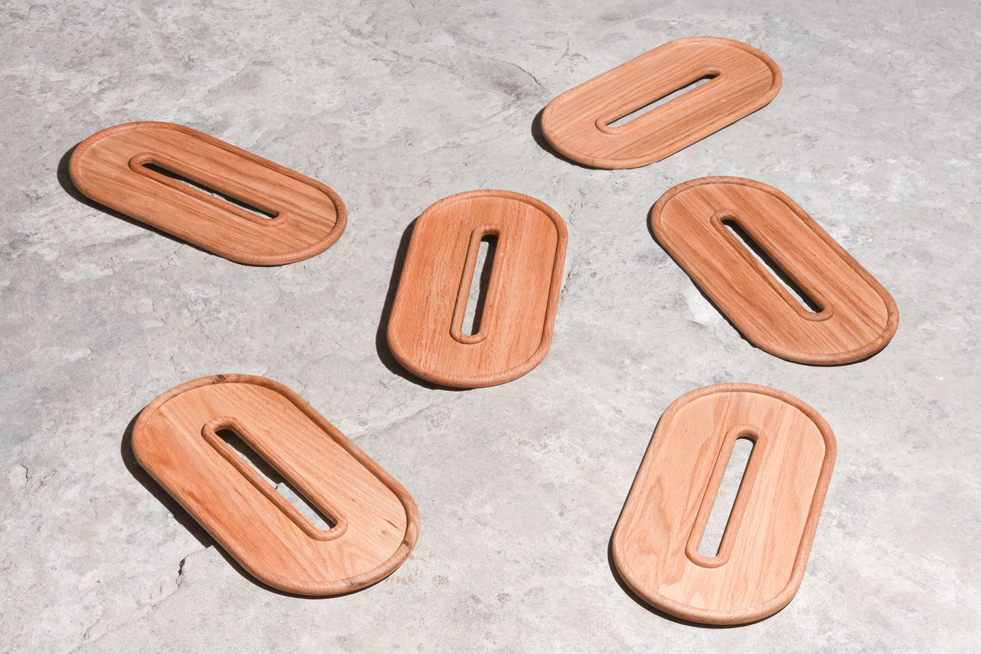 Aperitivo is a collection of tableware, a prelude to a future collection of furniture. It consists of different serving trays and a vase. These objects are intended to be raw, single-materials worked in the mass. It contains materials such as oak, stainless steel, concrete, salt stone and corian. Their simple and geometric shapes voluntarily leave the user a large margin of freedom and appropriation for their uses.